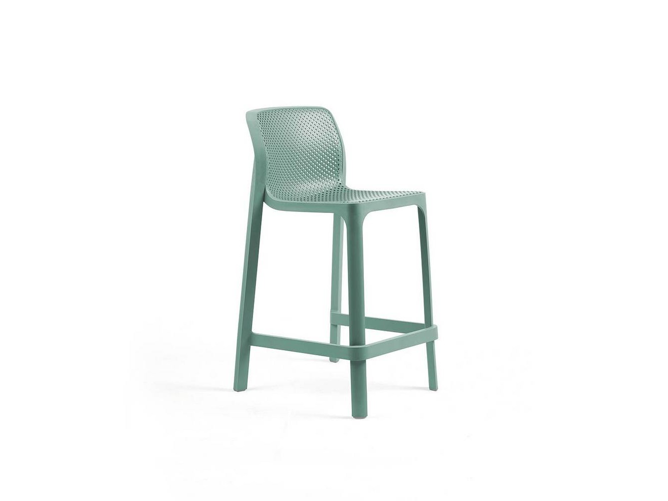 Fluid and clean lines characterise the single-body Net stool in fibreglass resin, available in six elegant matt colours.